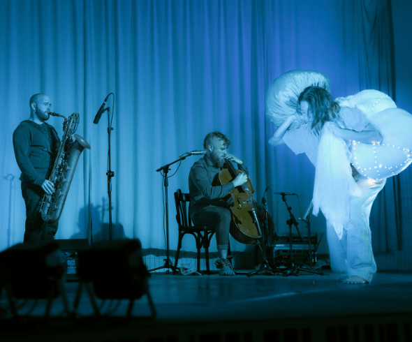 Pero no se trata de un simple espectáculo musical, ya que también se combinan danza, narración y teatro. Las coreografías de Amaiur Luluaga dan cuerpo momentánea a la música, y la poesía narrativa reescrita por Oihana Iguaran contextualiza lo escuchado y visto.