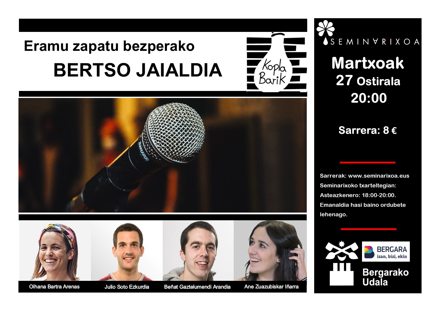 Urteroko ohiturari jarraituz, bertsozaleek goi mailako bertsolarien saioarekin gozatzeko aukera izango dute Erramu Zapatu bezperan.