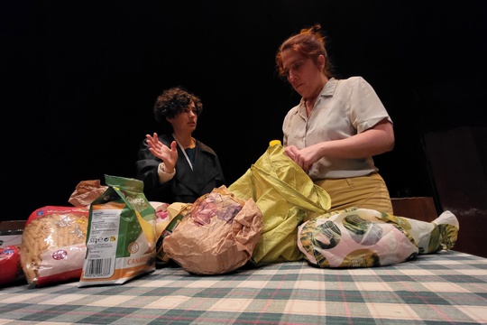 Antzezlana 1974an estreinatu zuen Dario Fok, eta bi etxekoandre xumek hilaren amaierara iristeko dituzten arazoak aurkezten ditu. Horietako bat supermerkatu batera sartuko da, eta ahal duen guztia eramango du. Gero, bi andreek, lapurretaz inor kontura ez dadin, plan bat asmatuko dute, gero eta nahasiagoa, senarrak ere konplize bihurtzeraino.